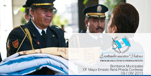 Una nueva edición de nuestro programa cívico permanente se llevó a cabo el día 9 de agosto del presente año. Esta vez fue el turno de una persona que ha dedicado su vida para estar al servicio de los demás y entregar sus esfuerzos para el resguardo de la población. Se trata del Oficial Mayor de Bomberos Ernesto René Pineda Contreras. Él ha conseguido varios título y desempeñado varios cargos importantes que han formado la trayectoria exitosa que hoy posee. En 1977 se gradúa como socorrista voluntario de Cruz Roja de Guatemala. El siguiente año, 1978, adquiere su título de Bombero Ad-Honorem de 3ra clase. Ingresó a la guardia permanente ese mismo año y fue ascendido hasta llegar a Oficial Mayor de Bomberos.