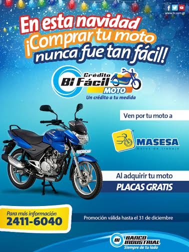 Temas: Productos y Servicios, Banco Industrial, Banco Industrial Guatemala, Bi, bi en linea, Bi Fácil Moto, Crédito, Credito Facil, Guatemala, Masesa, moto, motocicleta, Vida
