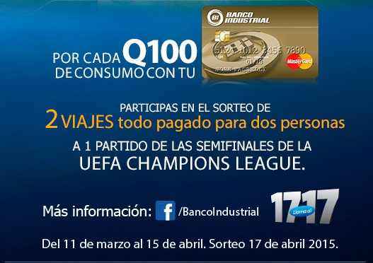 Temas: Productos y Servicios, Banco Industrial, Banco Industrial Guatemala, Bi, bi en linea, Champions, chica banco industrial, Master Card, UEFA